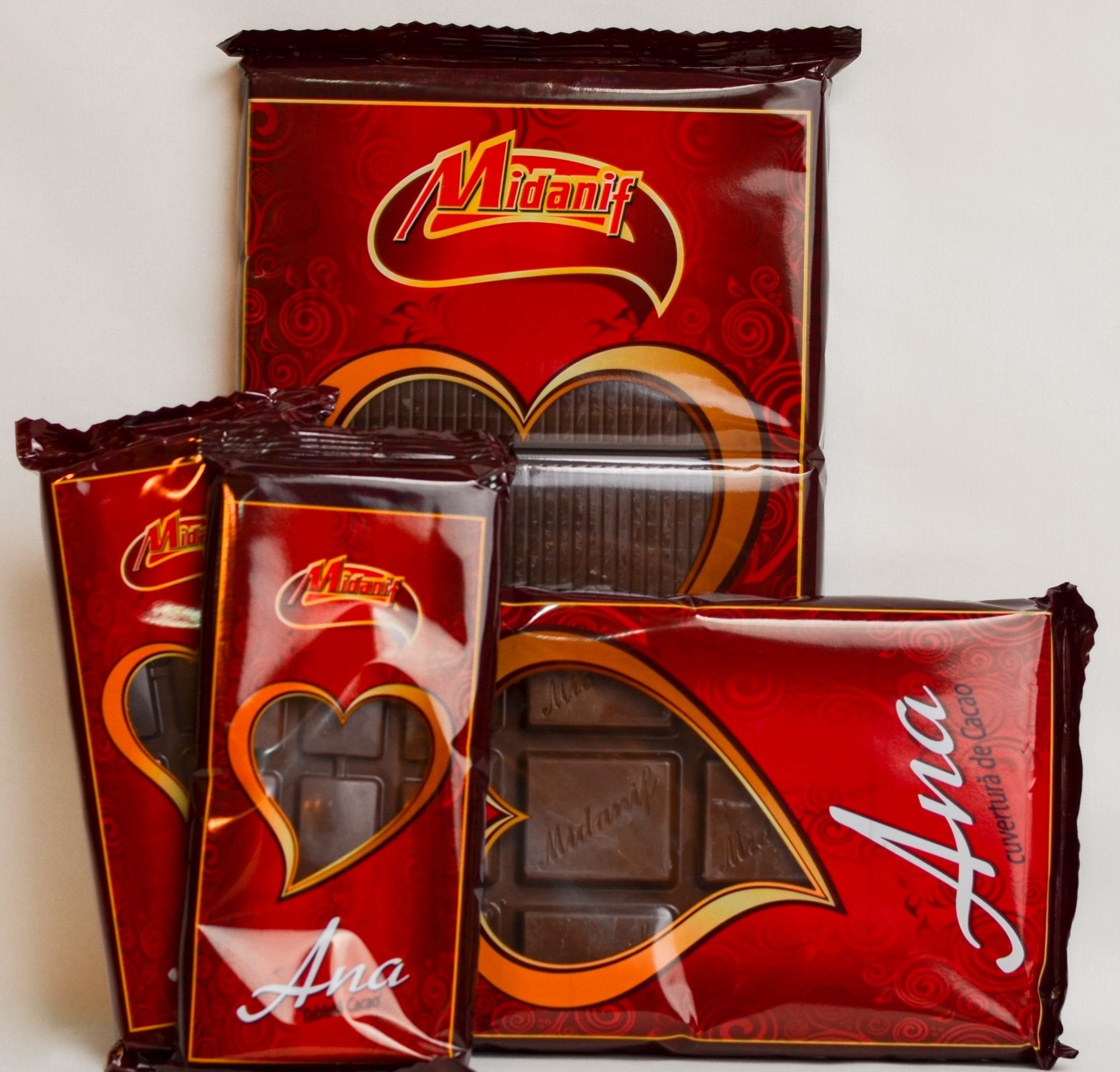 Cuverturile de ciocolată Midanif, produse sub denumirea ANA, în variantele cacao, cacao cu lapte, albă și cacao amăruie (de post) sunt destinate următorilor producători de dulciuri: laboratoarele de cofetărie, patiserii, brutării, fabrici de napolitane, fursecuri, biscuiți, producători de figurine de ciocolată, bomboane de ciocolată și alte produse confecționate din ciocolată în diverse aplicații, ele au fost realizate astfel încât să răspundă tuturor exigențelor clienților noștri.